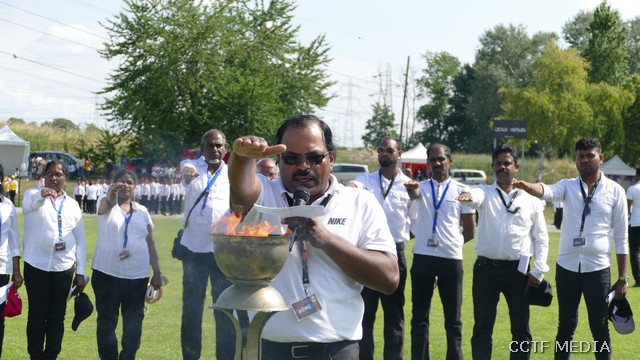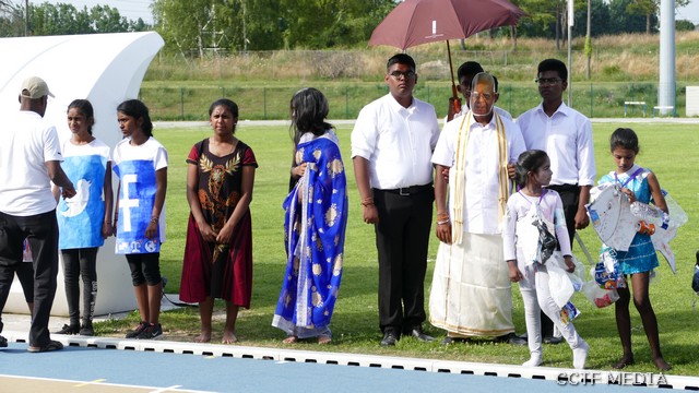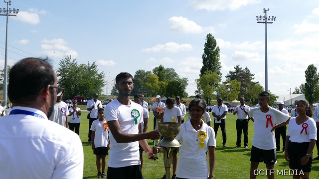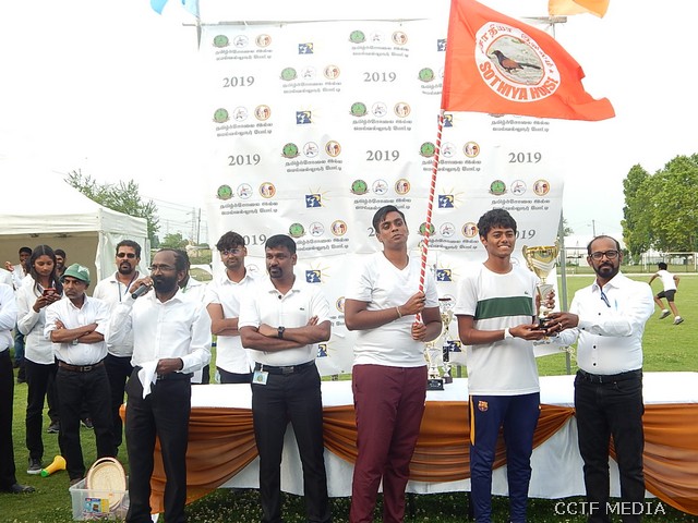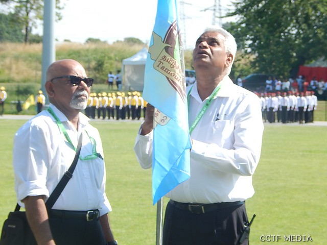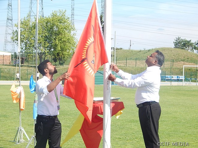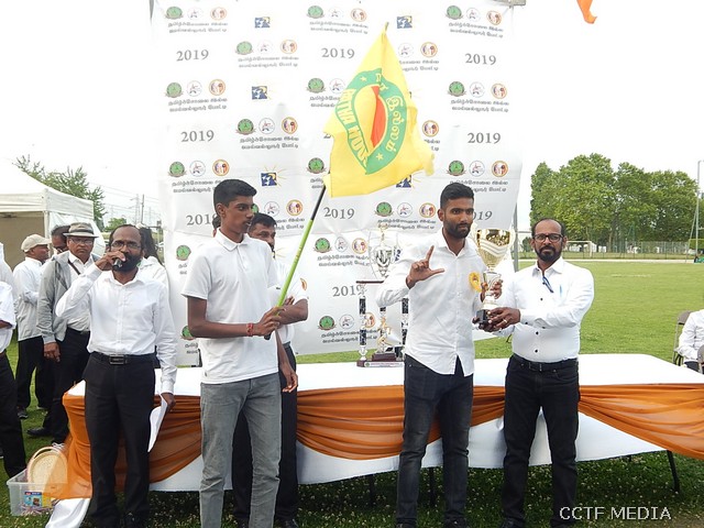 நேற்று (07.07.2019) ஞாயிற்றுக்கிழமை சார்சல் நகரத்தில் அமைந்துள்ள Centre Sportif Nelson Mandela மைதானத்தில் இறுதிப்போட்டிகள் மிகவும் சிறப்பாக இடம்பெற்றிருந்தன. சார்சல் நெல்சன்மண்டேலா மைதானப்பகுதியில் அமைந்துள்ள மாவீரர் நினைவுத்தூபி முன்பாக காலை 9.30 மணிக்கு இடம்பெற்ற ஆரம்ப வணக்க நிகழ்வு இடம்பெற்றது. ஈகைச்சுடரினை கடந்த 2001 ஆம் ஆண்டு திருகோணமலைக் கடற்பரப்பிலே வீரகாவியமான 2ஆம் லெப். ஆதவன் அவர்களின் சகோதரனும் பிரான்சு தமிழர் ஒருங்கிணைப்புக்குழு பொறுப்பாளருமான திரு. மகேஸ் அவர்கள் ஏற்றிவைத்து மலர்வணக்கம் செலுத்தினார். தொடர்ந்து முழவு (பான்ட்) வாத்திய அணிவகுப்புடன் விருந்தினர்கள் மைதானத்திற்கு அழைத்து வரப்பட்டதைத் தொடர்ந்து பொதுச்சுடரினை பிரான்சு தமிழர் ஒருங்கிணைப்புக்குழு கலைபண்பாட்டுக்கழகப் பொறுப்பாளர் திரு. திருமாறன் அவர்கள் ஏற்றிவைத்தார். பிரெஞ்சுக்கொடியை கார்ஜ் சார்சல் பிராங்கோ தமிழ்ச் சங்க பரப்புரைப்பொறுப்பாளர் திரு.கணபதிப்பிள்ளை அவர்கள் ஏற்றிவைக்க, தமிழீழத் தேசியக் கொடியை தமிழ்ச் சங்கங்களின் கூட்டமைப்புப் பொறுப்பாளர் திரு. பாலக்குமாரன் அவர்கள் ஏற்றிவைத்தார்.
