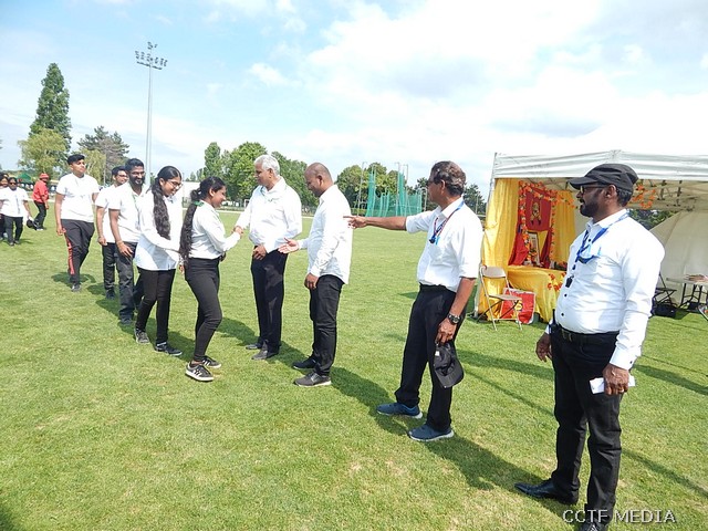 அகவணக்கத்தைத் தொடர்ந்து, தமிழ்ச்சோலைத் தலைமைப்பணியகக் கொடியை அதன் பொறுப்பாளர் திரு.ஜெயக்குமார் அவர்களும் தமிழ் சங்கங்களின் கூட்டமைப்புக்கொடியை அதன் செயலாளர் திருமதி அமலகுமார் சுபத்திரா அவர்களும் ஏற்றிவைத்ததைத் தொடர்ந்து சமநேரத்தில் 6 இல்லங்களுக்கான கொடிகளையும் இல்லங்களின் பொறுப்பாளர்கள் ஏற்றிவைத்தனர். ஒலிப்பிக் தீபத்தை மெய்வல்லுநர் போட்டி முகாமையாளர் திரு.இராஜலிங்கம் அவர்கள் கடந்த ஆண்டு மெய்வல்லுநர் போட்டித் தலைவன், தலைவியிடம் கையளிக்க அவர்கள் வீரர்களோடு மைதானத்தை வலம் வந்து இந்த ஆண்டுக்கான மெய்வல்லுநர் போட்டித் தலைவன் கலையழகன் கோசிகன்; மற்றும் மெய்வல்லுநர் தலைவி சோதிராசா சோனா ஆகியோரிடம் ஒலிம்பிக் தீபத்தை ஒப்படைக்க அவர்கள் ஒலிம்பிக் சுடரினை ஏற்றிவைத்து சத்தியப்பிரமாணம் செய்துகொண்டனர். தொடர்ந்து நடுவர்களுக்கான சத்தியப் பிரமாணத்தை நடுவர்களில் ஒருவரான திரு.யூட் ரமேஸ் அவர்கள் செய்துவைத்ததைத் தொடர்ந்து போட்டிகள் இனிதே ஆரம்பமாகின. சோதியா இல்லம் (சிவப்பு), அங்கையற்கண்ணி இல்லம் (நீலம்), ராதா இல்லம் (மஞ்சள்), மாலதி இல்லம் (செம்மஞ்சள்), சார்ள்ஸ் இல்லம் (பச்சை), ஜெயந்தன் இல்லம் (ஊதா)ஆகிய இல்லங்களிடையே விளையாட்டுப் போட்டிகள் மிகவும் விறுவிறுப்பாக இடம்பெற்றிருந்தன. தமிழ்ச்சோலை இல்ல மாணவர்களின் அணிநடை அணிவகுப்பு மிகவும் நேர்த்தியாக அமைந்திருந்தமை கண்கொள்ளாக் காட்சியாக இருந்தது. அணிவகுப்பு மரியாதையை பிரான்சு தமிழர் ஒருங்கிணைப்புக்குழு பொறுப்பாளர் திரு.மகேஸ், தமிழ்சோலைத் தலைமைப் பணியகப் பொறுப்பாளர் திரு.ஜெயக்குமார், மெய்வல்லுநர் போட்டி துணைமுகாமையாளர் திரு.பீலிக்ஸ், ,தமிழ் சங்கங்களின் கூட்டமைப்புப் பொறுப்பாளர் திரு.பாலக்குமாரன் கார்ஜ் சார்சல் தமிழ்ச்சங்கத் தலைவர் திரு.டக்ளஸ் ஆகியோர் ஏற்றுக்கொண்டனர். அணிநடை ஆண்கள் பிரிவில் சோதியா இல்லம் முதலிடத்தையும் ராதா இல்லம் இரண்டாம் இடத்தையும் சாள்ஸ் இல்லம் மூன்றாம் இடத்தையும் பெற்றுக்கொண்டன. அணிநடை பெண்கள் பிரிவில் சோதியா இல்லம் முதலிடத்தையும் சாள்ஸ் இல்லம் இரண்டாமிடத்தையும் ராதா இல்லம் மூன்றாம் இடத்தையும் பெற்றுக்கொண்டன. இம்முறை இல்ல அலங்காரம் மிகவும் நேர்த்தியாக அமைக்கப்பட்டிருந்தன. இல்ல அலங்காரத்தில் முதலிடத்தை மாலதி (செம்மஞ்சள்) இல்லமும் இரண்டாமிடத்தை அங்கையற்கண்ணி (நீலம்) இல்லமும், மூன்றமிடத்தை முறையே சாள்ஸ் (பச்சை), சோதியா (சிவப்பு) ஆகிய இல்லங்களும் பெற்றுக்கொண்டன. வினோத உடைப்போட்டி இம்முறை அனைவரையும் சிந்திக்க வைத்ததாக அமைந்திருந்தது. ஆறு இல்லங்களும் வினோத உடைப்போட்டிகளை சிந்தித்து அமைத்திருந்தமை பாராட்டத்தக்