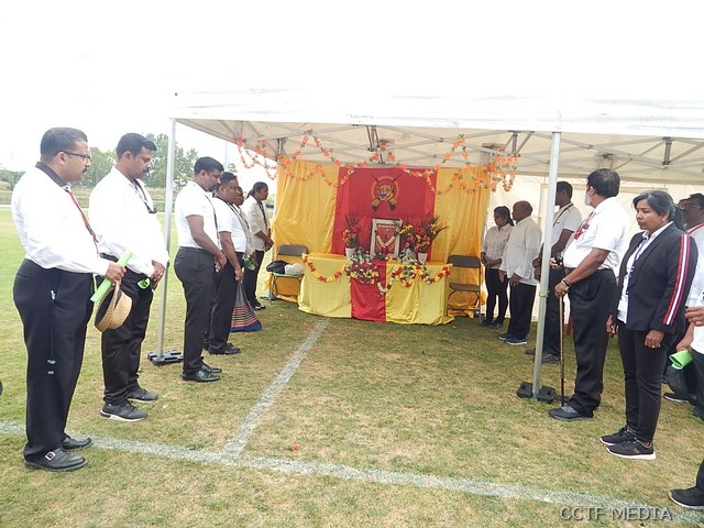 மைதானத்தின் வாயிலில் அமைந்திருக்கும் தமிழீழ விடுதலை புலிகளில் முதற்களப்பலியான லெப். சங்கர் ஞாபகார்த்த நினைவுத்தூபிக்கு முன்பாக சுடரினை மூன்று மாவீரர்களின் சகோதரர் ஏற்றிவைத்தார். தொடர்ந்து மைதானத்தில் மாவீரர் திருவுருவப்படத்திற்கான ஈகைச் சுடரினை 18.05.1984 அன்று பொலிகண்டிப் பகுதியில் வீரச் சாவடைந்த வீரவேங்கை செல்வம் அவர்களின் சகோதரி ஏற்றி வைத்து மலர் வணக்கம் செலுத்தினார். அகவணக்கத்துடன் போட்டிகள் ஆரம்பமாகின.