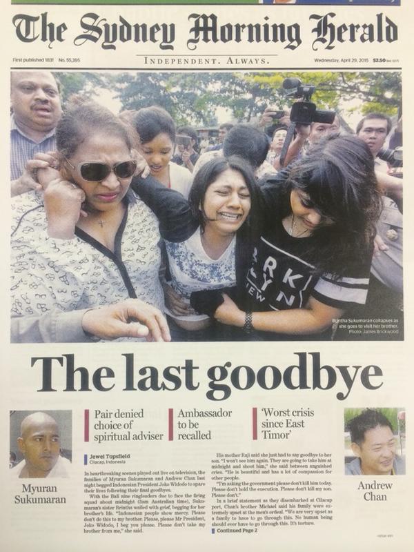 தனது குடிமக்களான மயூரன் , மற்றும் சான் ஆகியோர் மரணதண்டனையில் கொல்லப்பட்டால் அதற்கான எதிர்வினைகளுக்கு இந்தோனேஷியா முகம் கொடுக்கவேண்டி வரும் என்று அவுஸ்திரேலியா எச்சரித்திருந்த போதிலும் குற்றவாளிகளை தண்டித்து தடுப்பதற்காகவே இந்த தண்டனை நிறைவேற்றப்படுவதாக இந்தோனேஷியா தெரிவித்திருந்தமை இங்கு சுட்டிக்காட்டத்தக்கது.