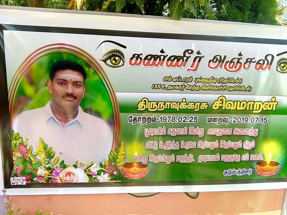 தமிழ் தேசத்தையும் மக்களையும் நேசித்தவரும் செம்பகம் தமிழ்தேசிய செயற்பாட்டுக்குழுமம் தீவககோட்ட செயற்பாட்டாளர்களில் ஒருவருமான அமரர் திருநாவுக்கரசு சிவமாறன் (மாறன்) அவர்கள் இன்று புற்றுநோய் காரணமாக சாவடைந்துள்ளார்.