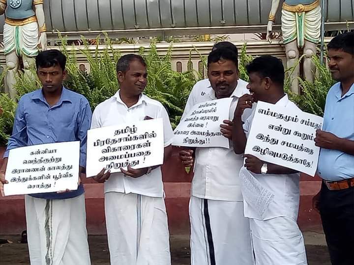 தமிழர் தாயகத்தில் விகாரைகள் அமைத்தல் உட்பட பௌத்த மேலாதிக்க செயற்பாடுகள் முன்னெடுக்கப்படுவதை கண்டித்தும் இந்துக்கள் பாதிப்புக்குள்ளாவதனால் அச்சமடையும் மன உணர்வுகளை வெளிப்படுத்தும் நோக்கில் அமைதி முறையிலான கவனயீர்ப்பு போராட்டம் இன்று சனிக்கிழமை காலை 9 மணியளவில் நல்லை ஆதீன முன்றலில் இடம்பெற்றது,