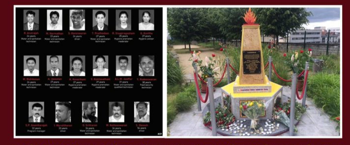92110 Clichy la Garenne(கிளிச்சிப்பகுதியில் குறித்த பணியாளர்கள் நினைவாக அமைக்கப்பட்டுள்ள நினைவுத் தூபிக்கு முன்பாக )