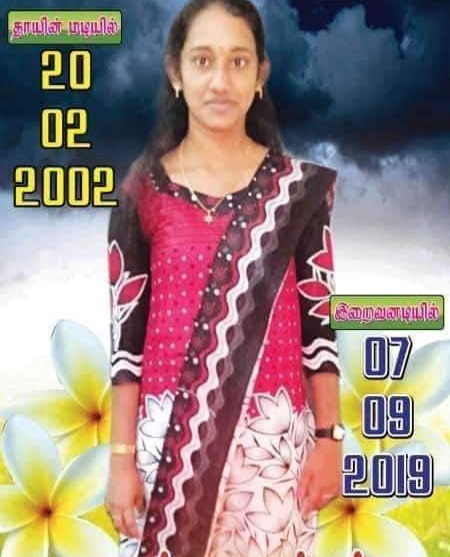 அம்பாறை மாவட்டம் காரைதீவைச்சேர்ந்த வெஸ்லி பாடசாலை உயர்தர கணிதபிரிவு மாணவியான அக்சயா(17வயது) இன்று காலை கல்முனையிற்கு பிரத்தியேக வகுப்பிற்கு செல்வதற்கு நீராடிவிட்டு தயராகிய நேரம் வீட்டில் ஏற்பட்ட மின்னொழுக்கு விபத்திற்குட்பட்டு சடுதியாக எரிகாயத்துடன் சடலமாக மீட்கப்பட்டுள்ளார்.