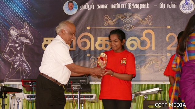 சிறப்பு நிகழ்வாக விடுதலையின் வேர்கள் என்னும் சிறப்பு விருது வழங்கப்பட்டு கலைஞர் திரு.எஸ்.எஸ்.தில்லைச்சிவம் அவர்கள் மதிப்பளிப்புச் செய்யப்பட்டார். குறித்த மதிப்பளித்தலை பிரான்சு தமிழர் ஒருங்கிணைப்புக்குழு பொறுப்பாளர் திரு.மகேஸ் அவர்கள் வழங்கியிருந்தார். விருதினைப் பெற்றுக்கொண்ட கலைஞர் திரு.எஸ்.எஸ்.தில்லைச்சிவம் அவர்கள் தமது உணர்வைப் பகிர்ந்திருந்தார். அவர்தெரிவிக்கையில், இந்த விருதை வழங்கிய பிரான்சு தமிழர் ஒருங்கிணைப்புக்குழு தமிழர் கலைபண்பாட்டுக்கழகத்திற்கு நன்றியைத் தெரிவித்ததுடன்,இது தனது கலைப் பணிக்கு மேலும் மெருகூட்டுவதாக அமைந்துள்ளதாகவும், தனது பங்கு தமிழர் கலைபண்பாட்டுக்கழகத்திற்கு என்றும் இருக்கும் எனவும் மிக்க மகிழ்ச்சியோடு, வார்த்தைகளே வெளியில் வரமுடியாத உணர்வு பொங்கத் தெரிவித்திருந்தார். குறித்த மதிப்பளித்தலின் முழுமையான அறிக்கை கீழே இணைக்கப்பட்டுள்ளது. தொடர்ந்து பரிசில்கள் வழங்கும் நிகழ்வு இடம்பெற்றது.