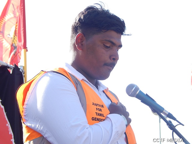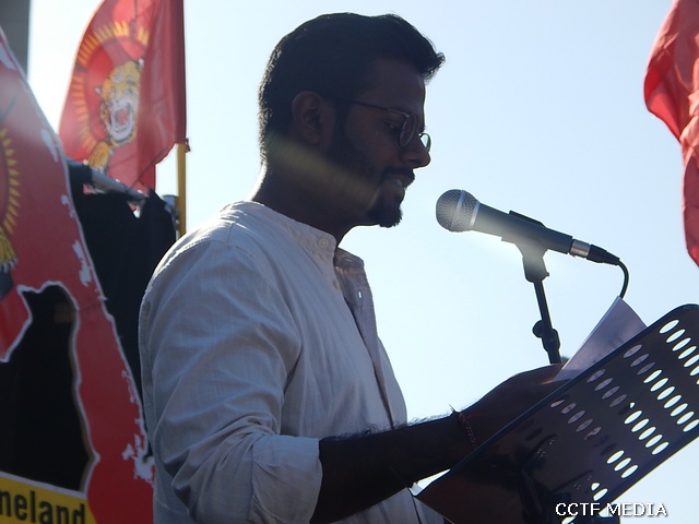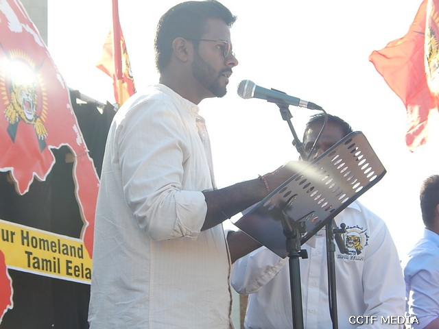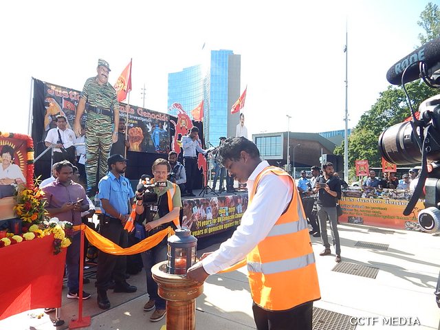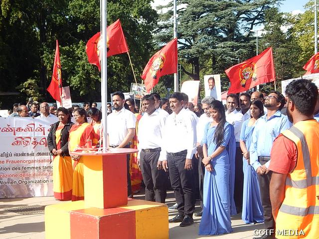 முருகதாசன் திடலில் ஈகிகளின் திரு உருவப்படத்திற்கு முன்பாக பொதுச்சுடர் ஏற்றப்பட்டதைத் தொடர்ந்து தமிழீழத் தேசியக்கொடி ஏற்றப்பட்டது. ஈகைச்சுடர் ஏற்றப்பட்டதைத் தொடர்ந்து அகவணக்கம் செலுத்தப்பட்டது. மலர்வணக்கம் செலுத்தப்பட்டு, மலர்மாலை அணிவிக்கப்பட்டதைத் தொடர்ந்து அரங்க நிகழ்வுகள் ஆரம்பமாகின. திரு.கவிதரன் அவர்கள் தனது அறிவிப்பின் ஊடாக நிகழ்வுகளைக்கொண்டு சென்றார். பிரான்சில் இருந்து ஜெனிவா நோக்கி நடைபயணத்தில் சென்ற செயற்பாட்டாளர்கள், பெல்ஜியம் நாட்டில் இருந்து ஜெனிவாநோக்கி ஈருருளிப் பயணத்தில் சென்றவர்கள் அரங்கில் மதிப்பளிக்கப்பட்டனர். அவர்களின் உன்னதமான பணிகுறித்தும் தெரிவிக்கப்பட்டது. குறித்த செயற்பாட்டாளர்களின் சார்பில் பலரும் தமது கருத்துக்களைப் பகிர்ந்திருந்தனர். ஆங்கிலம், பிரெஞ்சு, ஜேர்மன், இத்தாலி, தமிழ் மொழிகளில் இளையோர்கள் தமிழ் மக்களின் கோரிக்கைகளை முன்வைத்திருந்தனர். சிறப்புரைகள், உணர்ச்சிக்கவிதை, ஜெனிவா மாணவிகளின் எழுச்சி நடனம் இடம்பெற்றன. நிறைவாக இன்றைய நிகழ்வின் பிரகடனம் வாசிக்கப்பட்டது. தொடர்ந்து நம்புங்கள் தமிழீழம் நாளை பிறக்கும் பாடல் ஒலித்து நிறைவடைந்ததும் தமிழீழத் தேசியக் கொடி இறக்கப்பட்டு தமிழரின் தாகம் தமிழீழத் தாயகம் என்ற தாரகமந்திரத்துடன் கவனயீர்ப்பு நிறைவுபெற்றது.