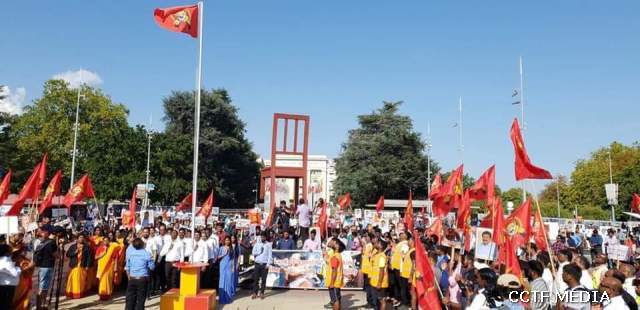 தமிழின அழிப்பிற்கு நீதியை பெற்றுக்கொடுக்க சர்வதேச சமூகம் முன்வர வேண்டும் என்று வலியுறுத்தி- ஜெனீவாவிலுள்ள ஐ.நா தலைமையகத்திற்கு முன்பாக புலம்பெயர் தமிழர்கள் இன்று 16.09.2019 திங்கட்கிழமை அணியெனத் திரண்டனர்.