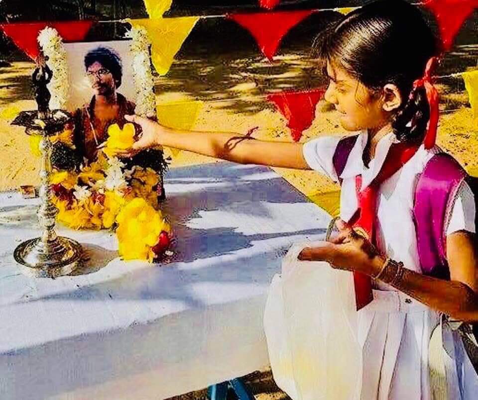 தீலிபனின் பாதங்களை பூஜிக்கும் இந்த சிறுமி,