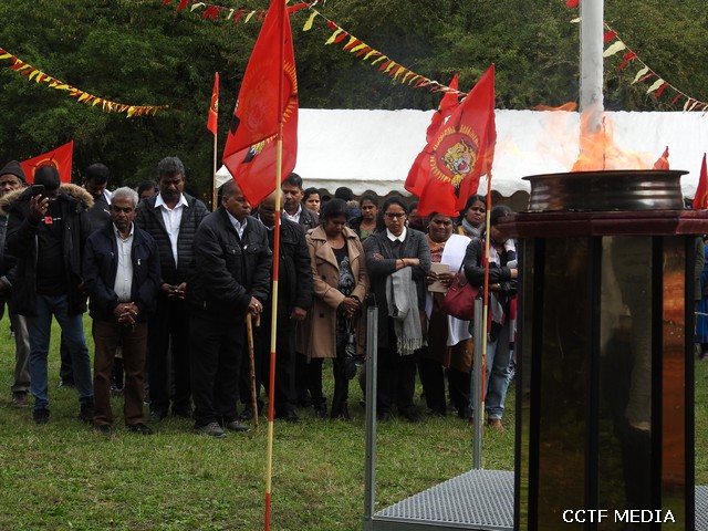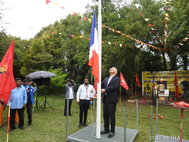 பிரெஞ்சு தேசத்தின் தேசியக்கொடியை பிரெஞ்சு நாடாளுமன்ற உறுப்பினர்Philip Doucet அவர்கள் ஏற்றிவைக்க தமிழீழத் தேசியக்கொடியை ஆர்ஜொந்தை தமிழ் இளையோர் அமைப்பின் செயற்பாட்டாளர் செல்வன் ஞானசீலன் நிதர்சன் அவர்கள் ஏற்றிவைத்தார். தியாகதீபம் லெப்.கேணல் திலீபன் அவர்களின் திருஉருவப்படத்திற்கான ஈகைச்சுடரினை 02.11.1987 அன்று கொக்குவில் பகுதியில் வீரச்சாவடைந்த கப்டன் ஜெயராம் (மோகன்ராம்) அவர்களின் சகோதரி ஏற்றிவைக்க கேணல் சங்கர் அவர்களின் திருஉருவப்படத்திற்கான ஈகைச்சுடரினை 2009 இறுதிப்போரில் வீரச்சாவடைந்த மாவீரர் திவ்வியராஜ் (உருத்திரன்) அவர்களின் சகோதரன் ஏற்றிவைத்தார்.