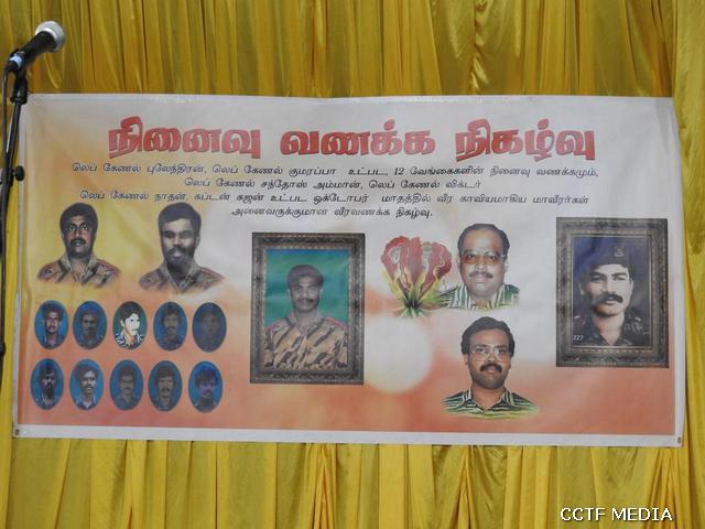 ஈகைச்சுடரினை 23.11.1999 அன்று இலுப்பைக்கடவைப் பகுதியில் வீரகாவியமான மேஜர் செங்கோட்டையன் அவர்களின் சகோதரி ஏற்றிவைத்து மலர் வணக்கம் செலுத்தினார். அகவணக்கத்தைத் தொடர்ந்து நிகழ்வில் கலந்து கொண்ட அனைவரும் அணிவகுத்து சுடரேற்றி வணக்கம் செலுத்தினர். அரங்க நிகழ்வுகளாக தமிழ்சோலை மற்றும் நடனப் பள்ளி மாணவிகளின் மாவீரர்களின் நினைவு சுமந்த நடனமும், தமிழர் கலைபண்பாட்டுக்கழகப் பாடகர்களின் விடுதலைப் கானங்களும், கவிதையும் இடம்பெற்றிருந்தன. சிறப்பு உரையினை தமிழர் ஒருங்கிணைப்புக் குழு பரப்புரைப் பொறுப்பாளர் திரு. மேத்தா அவர்கள் ஆற்றியிருந்தார். அவர் தனது உரையில் மாவீரர்களின் உயிர்த்தியாகங்கள் பற்றிக் குறிப்பிட்டதோடு, வரும் நவம்பர் 27 அன்று அனைவரும் ஒருமித்து மாவீரர்களை நினைவுகொள்ளத் தயாராகவேண்டும் எனவும் கேட்டுக்கொண்டார். நிறைவாக நம்புங்கள் தமிழீழம் நாளை பிறக்கும் பாடல் ஒலித்து, தமிழரின் தாகம் தமிழீழத் தாயகம் என்னும் தாரகமந்திரத்துடன் நிகழ்வுகள் யாவும் நிறைவுபெற்றன. (பிரான்சு தமிழர் ஒருங்கிணைப்புக்குழு – ஊடகப்பிரிவு)