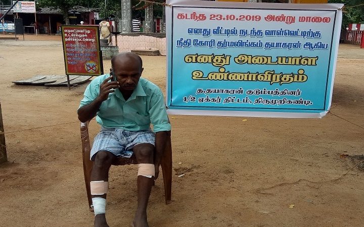 கிளிநொச்சியில், வாள்வெட்டுக்கு இலக்கான குடும்பஸ்தர் நீதி கோரி உண்ணாவிரதப் போராட்டம் ஒன்றை முறிகண்டியில் முன்னெடுத்தார்.