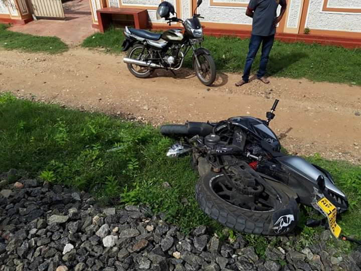 மீன் வாங்கிக் கொண்டு உந்துருளியில் வந்த நேரத்தில் இந்த விபத்து இடம்பெற்றுள்ளது.