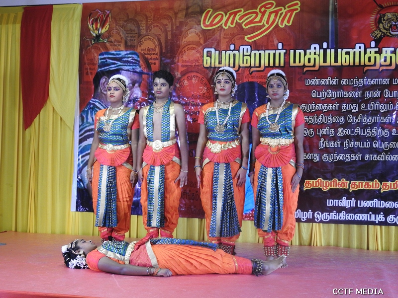 மாவீரர் திருஉருவப்படத்துக்கான ஈகைச்சுடரினை 02.12.1992 அன்று வண்ணான்குளம் பகுதியில் வீரச்சாவடைந்த வீரவேங்கை சரோஜன் அவர்களின் பெற்றோர்; ஏற்றிவைக்க திருஉருவப்படத்திற்கான மலர்மாலையை 27.11.1998 அன்று கோப்பாய் பகுதியில் வீரச்சாவடைந்த லெப்.உயிரவன் அவர்களின் தாயார் அணிவித்தார். அகவணக்கத்தைத் தொடர்ந்து, மாவீரர் பெற்றோர், சகோதரர்கள், பொதுமக்கள் என அனைவரும் அணிவகுத்து சுடரேற்றி மலர்வணக்கம் செலுத்தினர். தொடர்ந்து அரங்க நிகழ்வுகள் ஆரம்பமாகின. அரங்க நிகழ்வுகளாக தமிழ்ச்சோலை மாணவர்களின் எழுச்சி நடனங்கள், மாவீரர் கலைத்திறன்போட்டிகளில் வெற்றிபெற்ற மாணவ, மாணவிகளின் பேச்சு, தனிநடிப்பு, பாட்டு, கவிதை என்பவற்றுடன் பிரான்சு தமிழர்கலைபண்பாட்டுக்கழகப் பாடகர்களின் மாவீரர் நினைவுசுமந்த பாடல்களும் இடம்பெற்றன.
