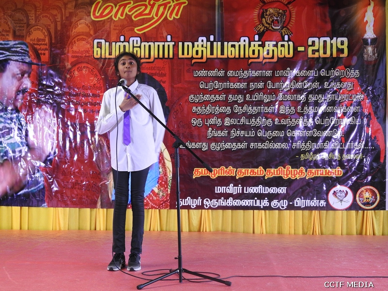 பிரான்சு தமிழர் ஒருங்கிணைப்புக்குழு மாவீரர் பணிமனையின் ஏற்பாட்டில் பிரான்சு மாவீரர் பெற்றோர் உரித்துடையோர் மதிப்பளிப்பு நிகழ்வு நேற்று 24.11.2019 ஞாயிற்றுக்கிழமை முற்பகல் 10.00 மணிக்கு Nanterre பகுதியில் மிகவும் உணர்வுபூர்வமாக இடம்பெற்றது.