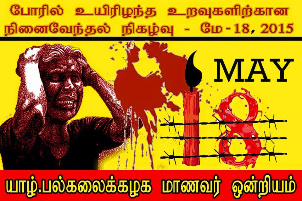 ஈழப் போரில் உயிரிழந்த உறவுகளுக்கான நினைவேந்தல் நிகழ்வு வரும் திங்கட்கிழமை மே,பதினெட்டாம் திகதியன்று யாழ்.பல்கலைக்கழக மாணவர் ஒன்றியத்தின் ஏற்பாட்டில் உணர்வு பூர்வமாக அனுஷ்டிக்க தீர்மானிக்கப்பட்டுள்ளது.