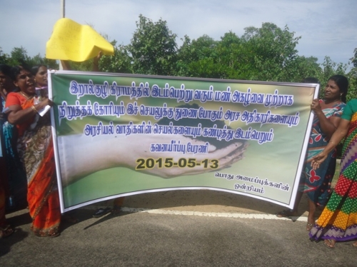 அப்போது அவ்விடத்திற்க வந்த மைத்திரி அரசின் பங்காளிக் கட்சியான தமிழ்த் தேசியக் கூட்டமைப்பின் உறுப்பினர் திருச்செல்வம் அவர்கள் போராட்டத்தில் ஈடுபட்ட பொது மக்கள் மீது அழுத்தங்களைப் பிரயோகித்து போராட்டத்தை கைவிட்டு கலைந்து செல்லுமாறு வற்புறுத்தியிருந்தார். எனினும் பொது மக்கள் அதற்கு மறுத்ததுடன் தமிழ்த் தேசிய மக்கள் முன்னணியுடன் இணைந்து தொடர்ந்து போராட்டம் நடாத்தினர்.