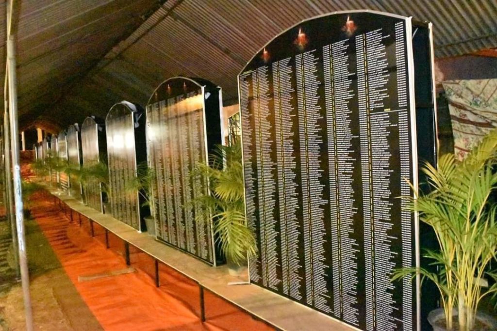 மாவீரர்களின் பெயர் பொறிக்கப்பட்ட கல்வெட்டுக்கள் மக்கள் அஞ்சலிக்காக வைக்கப்பட்டுள்ளன.