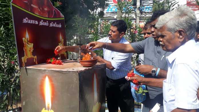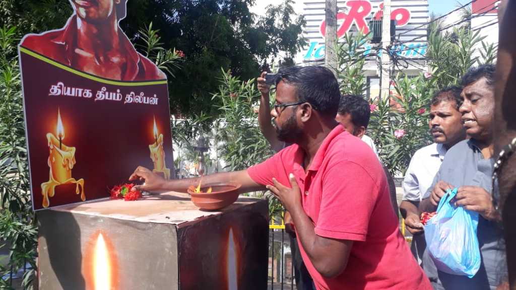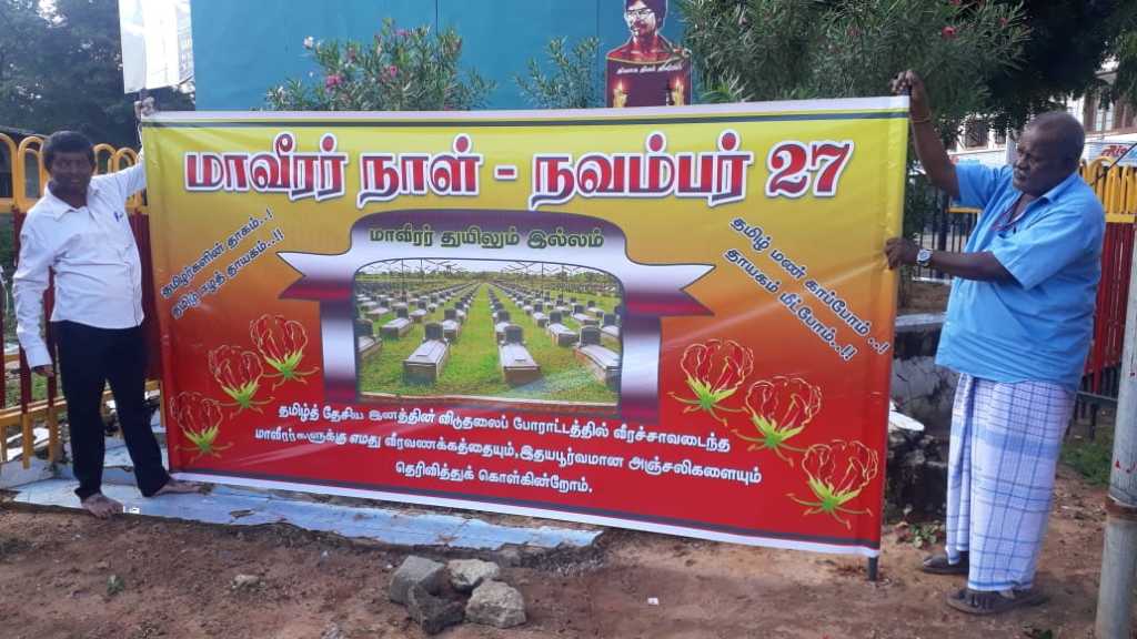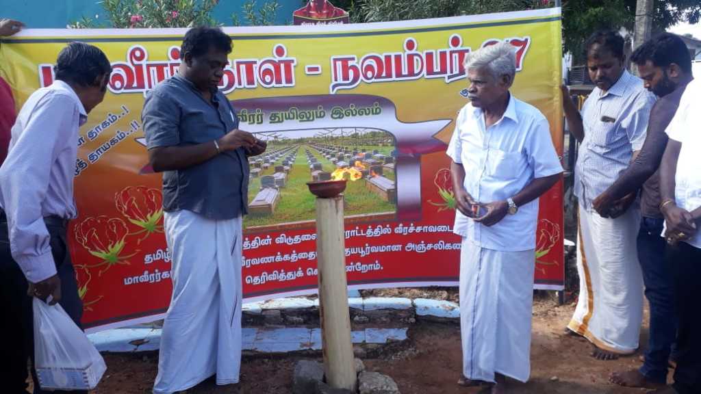 யாழ்ப்பாணம் நல்லூரில் அமைந்துள்ள தியாக தீபம் திலீபனின் நினைவு தூபி முன்பாக இன்று காலை மாவீரர்நாள் நினைவேந்தல் இடம்பெற்றது.