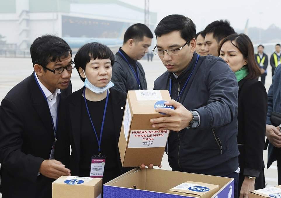 வெளிநாட்டு வாழ்க்கையை தேடி வந்து பிரித்தானியாவில் மாண்ட வியட்நாமியர்கள் அனைவரின் சடலங்களும்,அஸ்தியும் சொந்த மண்ணுக்குச் சென்று சேர்ந்தன.கொள்கலன் லாரி ஒன்றில் மாண்டுகிடக்கக் காணப்பட்ட வியட்நாமியர்கள் 16 பேரின் சடலங்களும் 7 பேரின் அஸ்தியும் சொந்த மண்ணைச் சென்றடைந்துள்ளன.மொத்தம் 39 பேர் சென்ற மாதம் லாரியில் மாண்ட நிலையில் கண்டுபிடிக்கப்பட்டனர்.முன்னதாக கடந்த புதன்கிழமை 16 பேரின் உடல்கள் சொந்த ஊரில் உள்ள குடும்பத்தினரிடம் ஒப்படைக்கப்பட்டன.எஞ்சிய 23 பேரின் சடலங்களும், அஸ்தியும் நேற்றுக் காலை ஹனோய் விமான நிலையம் சென்றடைந்ததாய் உள்ளூர் அதிகாரிகள் தெரிவித்தனர்.அவர்களில் 7 பேரின் உடல்கள் பிரிட்டனிலேயே எரிக்கப்பட்டதாய் வியட்நாமிய செய்தி நிறுவனம் குறிப்பிட்டது.