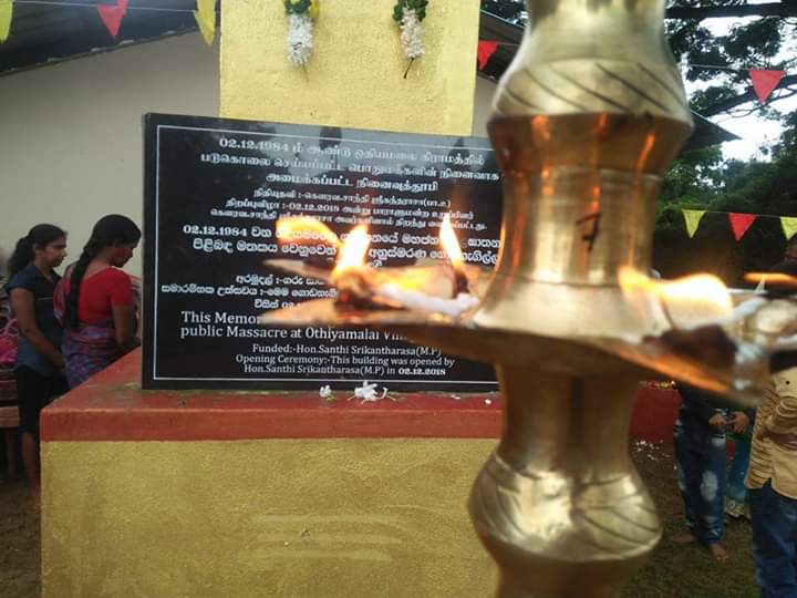 படுகொலை இடம்பெற்ற ஒதியமலை வாசிகசாலை முன்றலில் இந்த நினைவேந்தல் உணர்வுபூர்வமாக அனுஷ்டிக்கப்பட்டது.