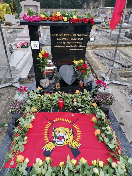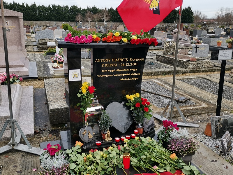 பிரான்சில் சாவடைந்த நாட்டுப் பற்றாளர் அன்ரனி பிரான்சிஸ் சந்தியோகு அவர்களின் 8 ஆம் ஆண்டு கல்லறை வணக்க நிகழ்வு வில்நெவ் சென் ஜோர்ஜ் பகுதியில் நேற்று (16.12.2019) திங்கட்கிழமை பிற்பகல் 15.00 மணிக்கு இடம்பெற்றது. பிரான்சு தமிழர் ஒருங்கிணைப்புக்குழு மாவீரர் பணிமனையின் ஏற்பாட்டில் பிரான்சு ஊடகமையத்தினால் நடாத்தப்பட்ட இந்நிகழ்வில் பொதுச்சுடரினை ஊடகமையத்தின் முக்கிய செயற்பாட்டாளர் சோதி அருளப்பு அவர்கள் ஏற்றிவைக்க, ஈகைச்சுடரினை நாட்டுப்பற்றாளர் அன்ரனி பிரான்சிஸ் சந்தியோகு அவர்களின் துணைவியார் ஏற்றிவைத்தார். நாட்டுப்பற்றாளர் அன்ரனி பிரான்சிஸ் சந்தியோகு அவர்களின் புதல்வி கல்லறைக்கான மலர்வணக்கத்தினை செலுத்தியிருந்தார். அகவணக்கத்தைத் தொடர்ந்து அனைவரும் சுடர் ஏற்றி மலர்வணக்கம் செய்தனர்.