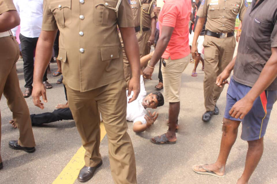 கிளிநொச்சி பளையில் மணல் கொ ள்ளைக்கு எதிராகப் போராட்டத்தில் ஈடுபட்ட மக்கள் பிரதிநிதிகள் மற்றும் பெண்களின் தலை முடிகளை இழுத்து தள்ளி பளைப் பொலிஸார்- அ டாவ டியில் ஈடுபட்டுள்ளனர். ஆனால் மணல் அ கழ்வுக்கு உள்ளாலும் க ள்ளாலும் அரசு ஊக்கமும் உ டந்தையும் என்பது ம றைமுகமான விடயத்தை இன்று பளைப் பொலிஸார் நி ருபித்துள் ளதாகவும் மக்கள் கு ற்றம் சுமத்தியுள்ளனர். அத்துடன் அவர்களின் இந்த நடவடிக்கை நீடிக்குமானால் தமது பகுதி வெகு விரைவில் அ ழிந்து விடும் என பிரதேசவாசிகள் ஆ தங்கம் வெளியிட்டுள்ளனர். இதேவேளை ஜனநாயக முறைப்படி எந்தவொரு ஆ ர்ப்பட்டமும் இல்லாமல் மக்கள் முன்னெடுத்திருந்த இப்போராட்டத்தில் ம னிதாபிமா னமற்ற முறையில் பொலிசார் ந டந்துகொண்டமைக்கு பலரும் விசனங்களை தெரிவித்துள்ளனர். மேலும் பொலிசாரின் அ ராஜகத் தினால் கீழே தள்ளப்பட்டுள்ள பச்சிலைப்பள்ளி பிரதேச சபையின் உறுப்பினர் ஒரு மாற்றுத் திறனாளி என்பது குறிப்பிடத்தக்கது.