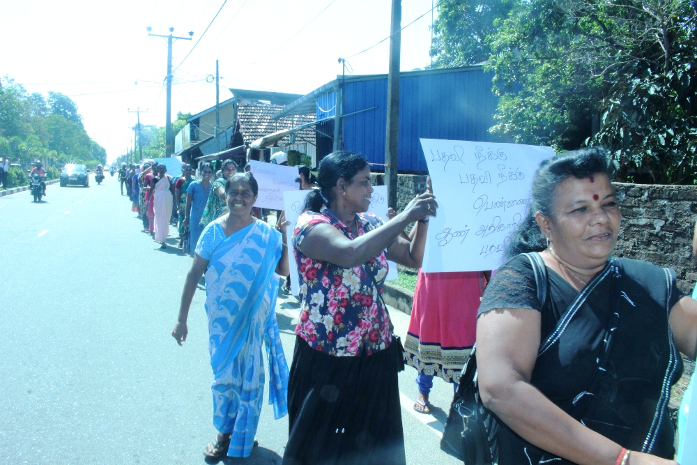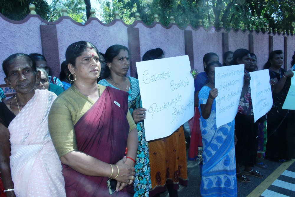 மட்டக்களப்பு மாநகரசபை உறுப்பினரும் மட்டக்களப்பு மாவட்ட மகளிர் அமைப்புகளின் ஒன்றியத்தின் தலைவியுமான திருமதி செல்வி மனோகர் தலைமையில் நடைபெற்ற இந்தக் கண்டன ஆர்ப்பாட்டத்தில் பெருமளவு பெண்கள் கலந்துகொண்டனர்.