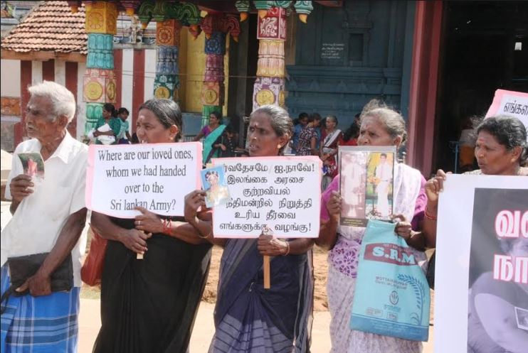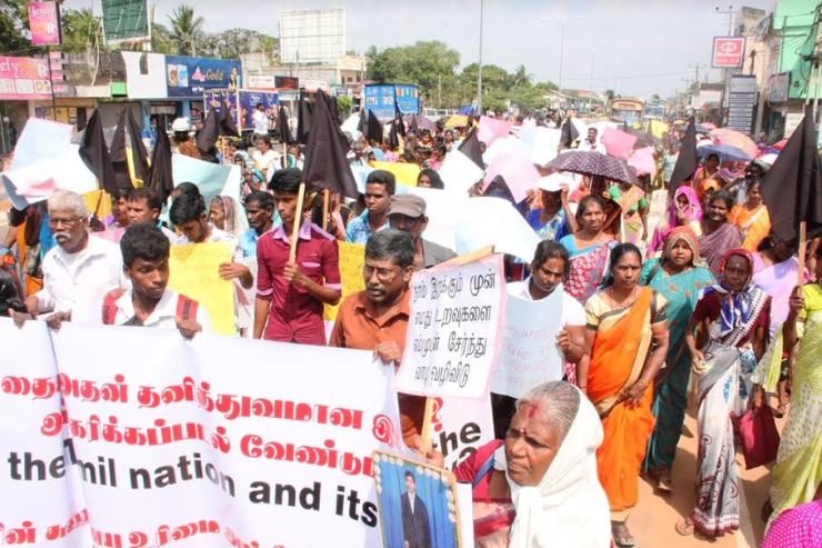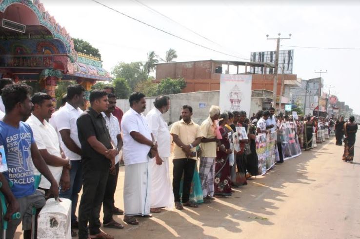 இன்று காலை பத்து மணிக்கு கிளி நொச்சி கந்தசுவாமி ஆலய முன்றலில் வலிந்து காணாமல் ஆக்கப்பட்டவர்களின் உறவினர்கள் இரு அணிகளாக பிரிந்து அரசுக்கு எதிராக போராட்டத்தில் ஈடுபட்டனர்.