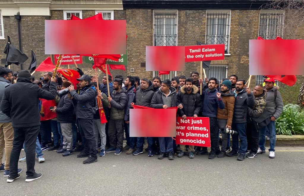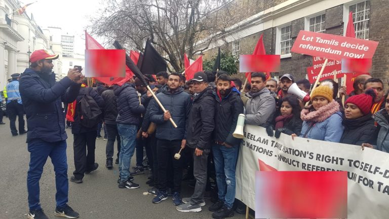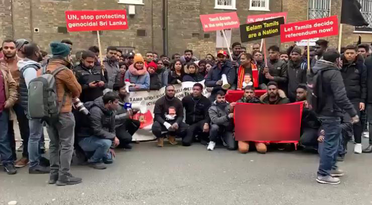 பிரித்தானியா தமிழர் ஒருங்கிணைப்புக் குழு மற்றும் சில அமைப்புக்களினால் ஏற்பாடு செய்யப்பட்ட இந்தப் போராட்டம் இன்று (செவ்வாய்க்கிழமை) பிரித்தானியாவில் உள்ள இலங்கை தூதரகத்திற்கு முன்பாக இடம்பெற்றது.