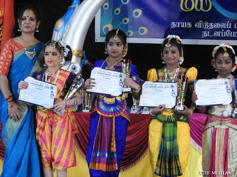 போட்டி முடிவுகள் தொடர்ச்சி…. •அதிமேற்பிரிவு பிரிவு (அ) 1 ஆம் இடம்: கிருபாகரன் சோபியா 2 ஆம் இடம்: கோவிந்தராஜ் சௌந்தர்யா 3 ஆம் இடம்: அற்புதநாதன் ஆருசா பிரிவு (ஆ) 1 ஆம் இடம்: சிமிர்னா தர்மகுலசிங்கம் 2 ஆம் இடம்: வசந்தகுமார் லேனா 3 ஆம் இடம்: விமலேந்திரன் கார்த்திகா பிரிவு (இ) 1 ஆம் இடம்: சுரேஸ் சொந்திரின்; 2 ஆம் இடம்: வசந்தகுமார் லெனிதா 3 ஆம் இடம்: சிவதுமாரன் சாம்பவி •அதி அதி மேற்பிரிவு பிரிவு (அ) 1 ஆம் இடம்: பாஸ்கரன் பிரசாந்தி 2 ஆம் இடம்: அருமைநாயகம் லிண்டா 3 ஆம் இடம்: விக்டர் தர்சிகா பிரிவு(ஆ) 1 ஆம் இடம்: புஸ்பகரன் அட்ஷயா 2 ஆம் இடம்: குமாரதாஸன் ஆதர்ஷா 3 ஆம் இடம்: லஜீந்திரன் சௌமியா சிறப்புப் பிரிவு 1 ஆம் இடம்: சுரேந்திரன் லாவண்யா 2 ஆம் இடம்: மாணிக்கா சரண்யா 3 ஆம் இடம்: ம்பேபி லியேயுவா கீழ்ப் பிரிவு குழு 1 ஆம் இடம்: இல.11 அழகான தமிழீழம் 2 ஆம் இடம்: இல. 05, சின்னமகளே, இல.06, துணையின்றி வாழ்ந்தோமே 3 ஆம் இடம்: இல. 02, டப்பாங்கூத்து பாட்டு, இல.08, வேலுப்பிள்ளை பிரபாகரன் வன்னிமயில் 2020 திருஞானசுந்தரம் ஆராதனி (அதி அதி மேற்பிரிவு)