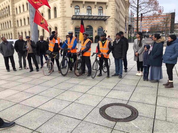 தொடர்ச்சியாக 7 ம் நாளாக தொடரும் தமிழின அழிப்பிற்கு நீதி கேட்கும் மனிதநேய ஈருருளிப்பயணம். நேற்றுஇன்று (01.03.2020) மனிதநேய ஈருருளிப்பயணம் Germany நாட்டின் எல்லையில் இருந்து ஆரம்பமாகி , Saarbrücken மாநகரத்தினை வந்தடைந்து மக்கள் சந்திப்பும் நடைபெற்றது. நாளை (02.03.2020) Saarbrücken மாநகரசபையில் காலை 9 மணி அளவில் முதல்வரினை சந்திந்து தமிழின அழிப்பிற்கு அனைத்துலக சுயாதீன விசாரணையினை வெளிவிவகார அமைச்சிற்கு வலியுறுத்த மனுவும் கையளிக்கப்பட இருக்கின்றது, அதனைத்தொடர்ந்து France நாட்டினுள் காலை உள்நுளைந்து பல அரசியற் சந்திப்புக்களையும் மேற்கொள்ள இருக்கின்றார்கள் மனிதநேய ஈருருளிப்பயணப் போராளிகள். எவ்விடர் வரினும் எம் இலக்கினை நோக்கி நிச்சயம் எம் பயணம் தொடரும். « தமிழரின் தாகம் தமிழீழத்தாயகம் » நேற்று