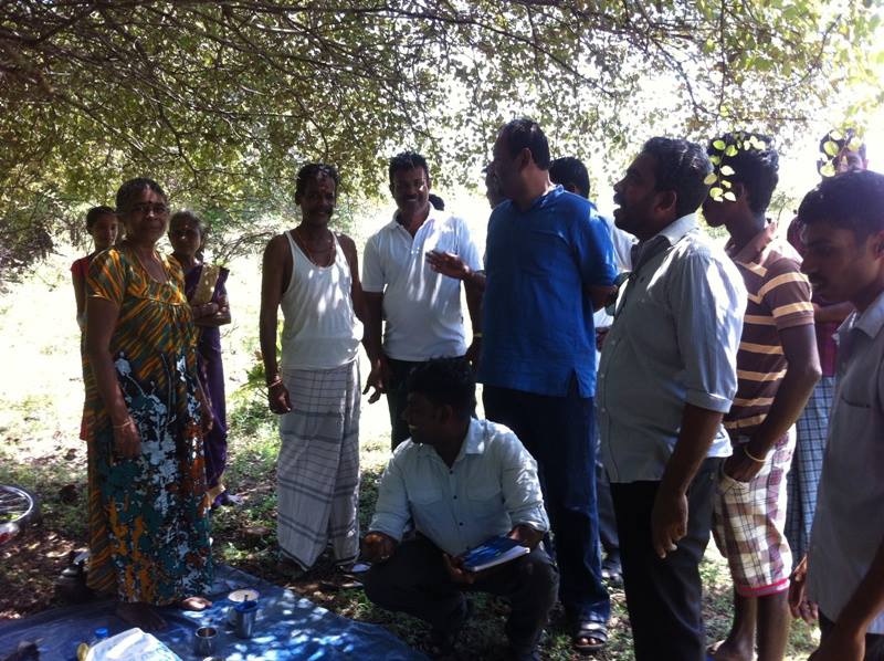 சம்பூர் மீள்குடியேற்றத்தை வலியுறுத்தி நடைபெற்ற உண்ணாவிரதப் போராட்டத்தின் எதிரொலியாக உடனடியாகக் கூடிய உச்ச நீதிமன்றம் மீள்குடியேற்றத்திற்கு அனுமதித்த நிலையில் மறுநாள் 21ம் திகதி சம்பூரில் உள்ள தமது நிலங்களை துப்பரவாக்குவதற்காக சென்றுள்ள மக்களுடன் தமிழ்த் தேசிய மக்கள் முன்னணியின் தலைவர் கஜேந்திரகுமார் பொன்னம்பலம் மற்றும் பொதுச் செயலாளர் செல்வராசா கஜேந்திரன் ஆகியோர்.