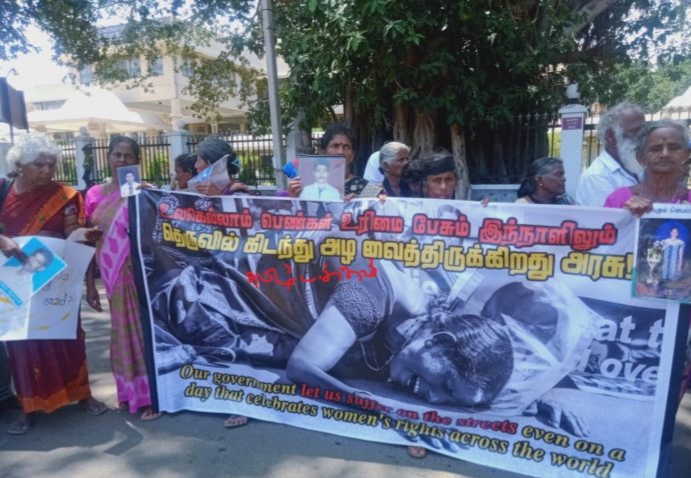 சர்வதேச மகளிர் தினமான இன்று இந்த தினத்தை துக்க தினமாக அனுஷ்டித்து சர்வதேச விசாரணையைக் கோரி இந்த கவனயீர்ப்பு போராட்டம் முன்னெடுக்கப்பட்டுத்திருந்தனர்.