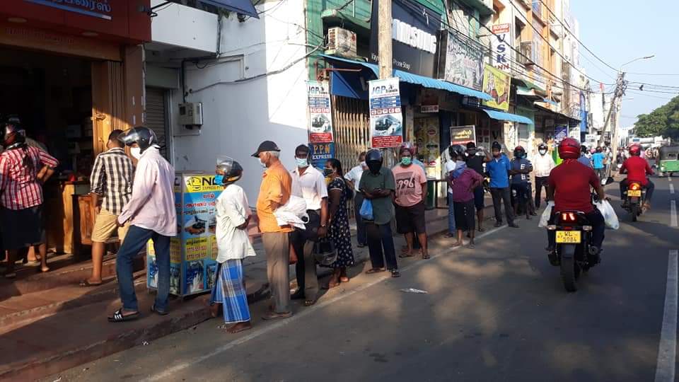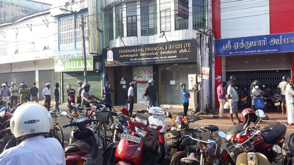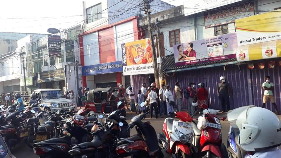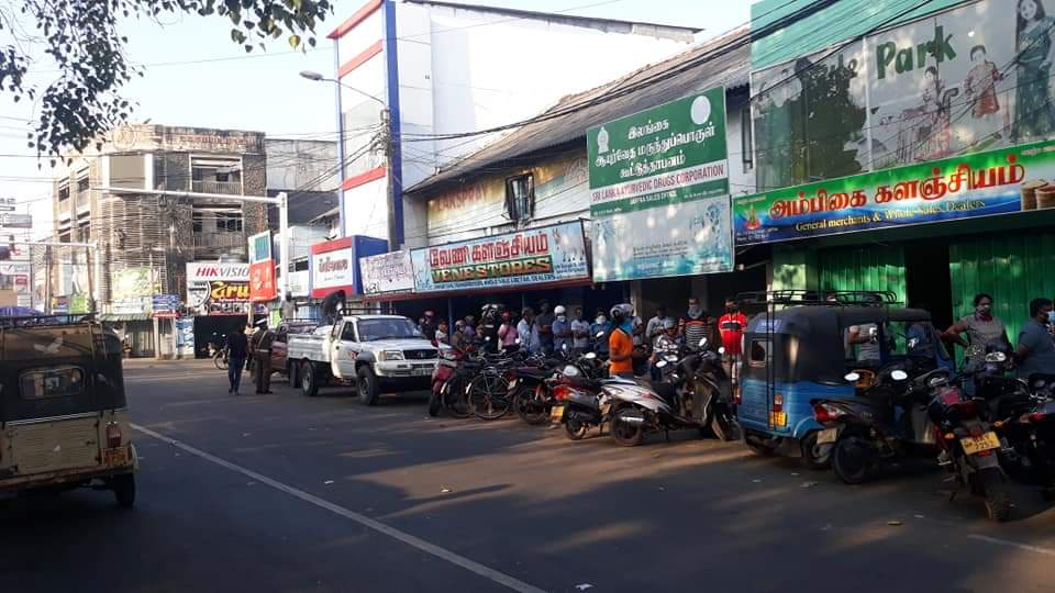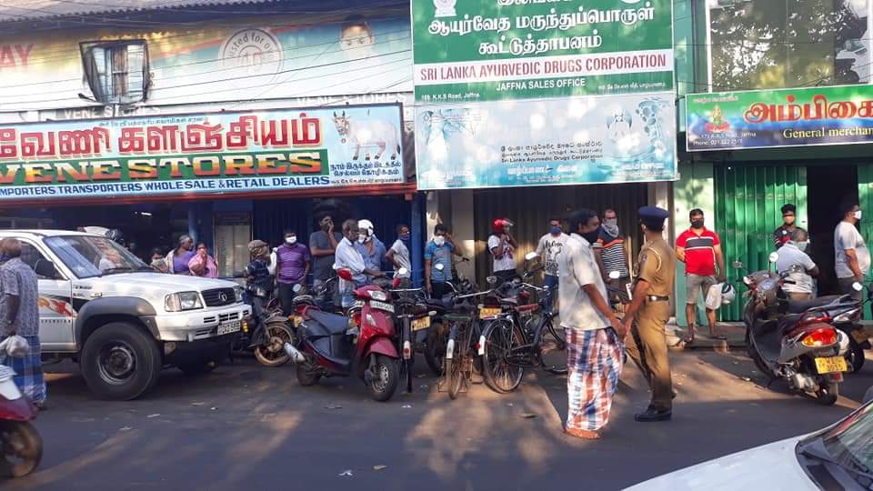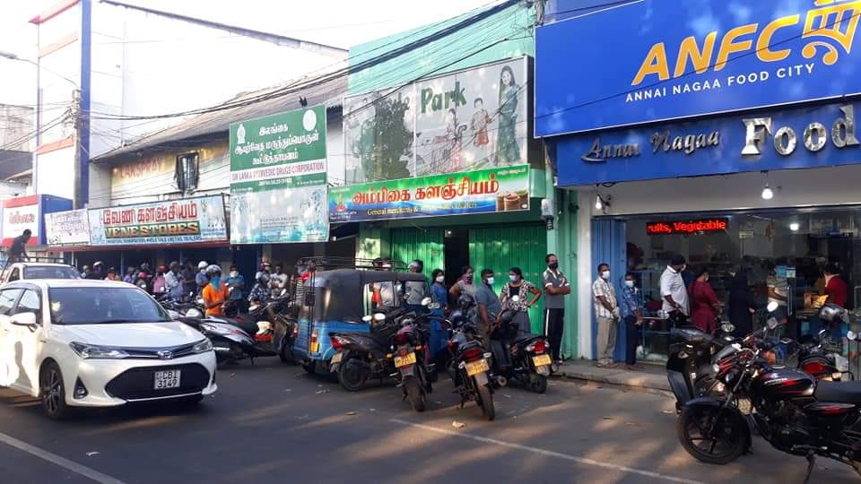 யாழ். நகரில் இன்று காலை ஊரடங்கு தளர்த்தப்பட்ட வேளை பொருட்கள் கொள்வனவுக்காக மக்கள் முண்டியடிப்பு.