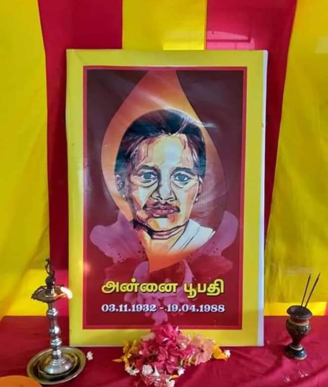 யாழில் தமிழீழத் தாயவள் தியாகி அன்னை பூபதி அவர்களின் 32 ஆவது ஆண்டு நினைவேந்தல் இன்று 19.04.2020 ஞாயிற்றுக்கிழமை தமிழ்த்தேசிய மக்கள் முன்னணியின் ஏற்பாட்டில் இடம்பெற்றுள்ளது.