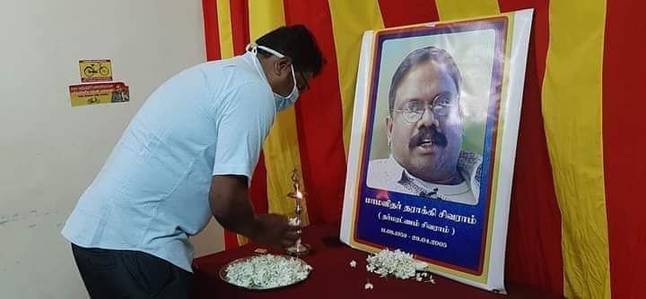 உடகவியலாளர் மாமனிதர் தராக்கி சிவராம் அவர்களின் 15ஆவது ஆண்டு நினைவேந்தல் இன்று 29.04.2020 புதன்கிழமை யாழில் தமிழ்த் தேசிய மக்கள் முன்னணியின் தலைமை செயலகத்தில் நடைபெற்றது.