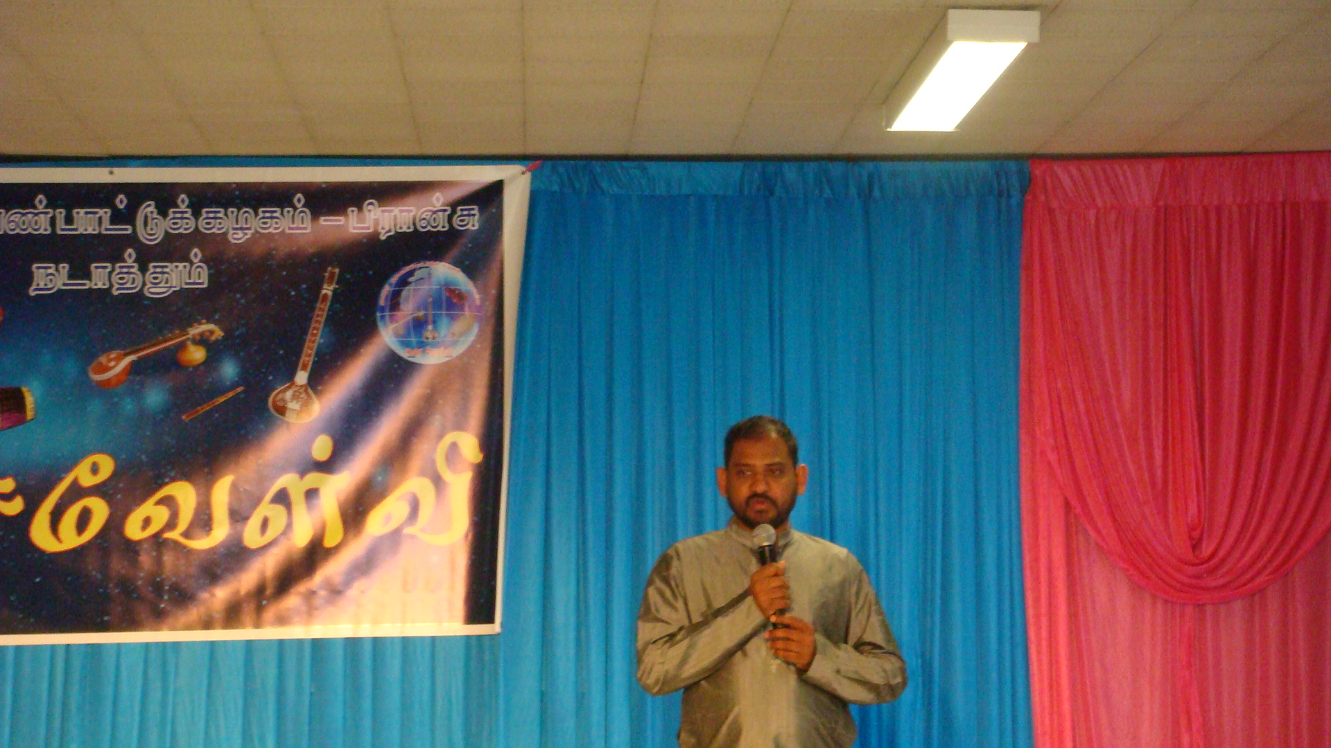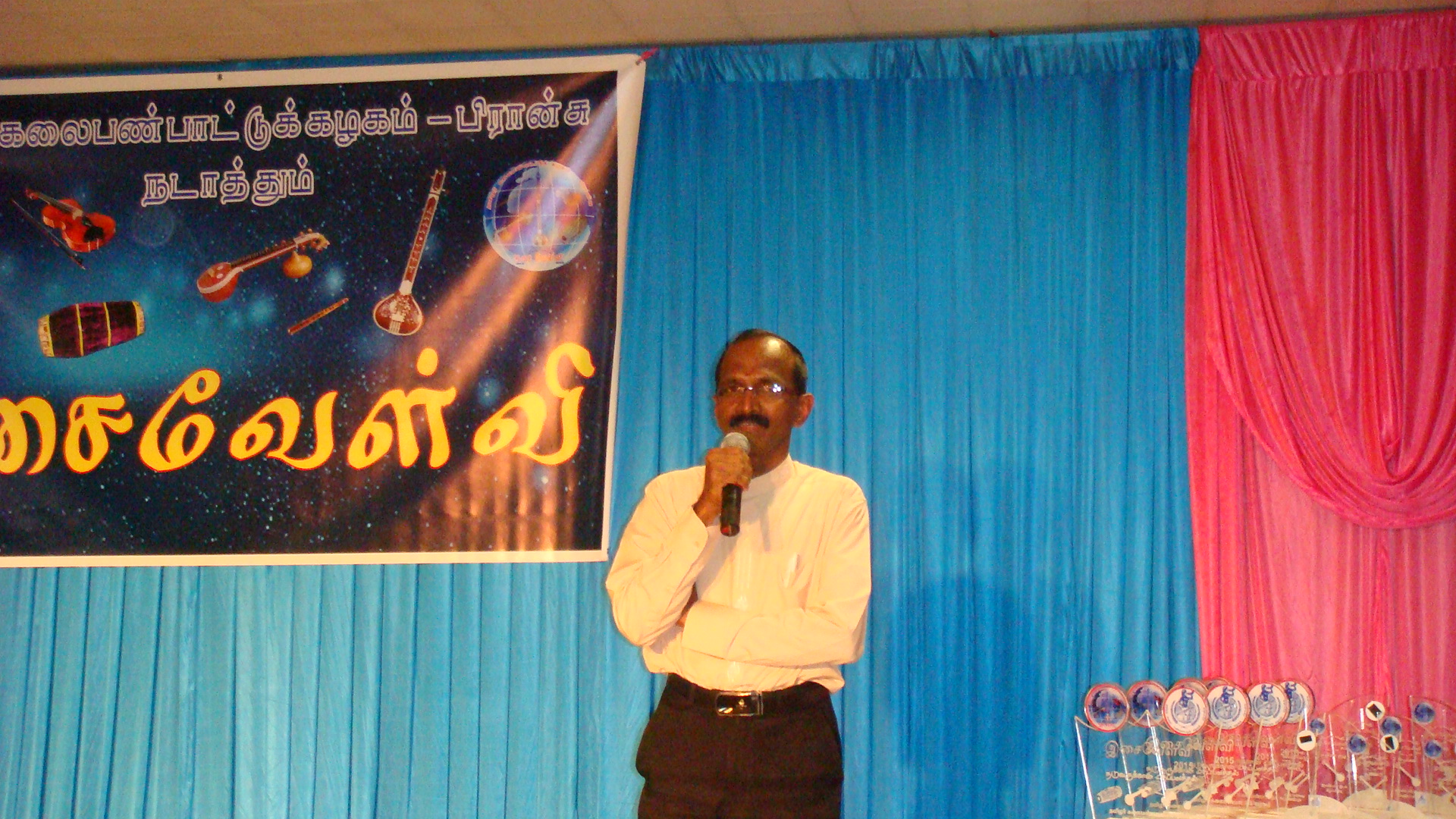 இசைவேள்வி கர்நாடக சங்கீதப்போட்டி ஒருங்கமைப்பாளரும் மிருதங்க ஆசிரியருமான திரு.கட்சன் அவர்கள் ‘இசைத் துளிர்” தொடர்பான கருத்துக்களை அரங்கில் முன்வைத்தார்.