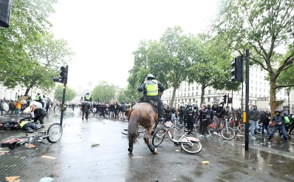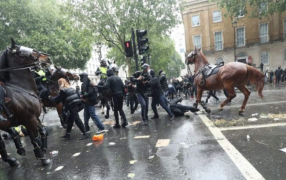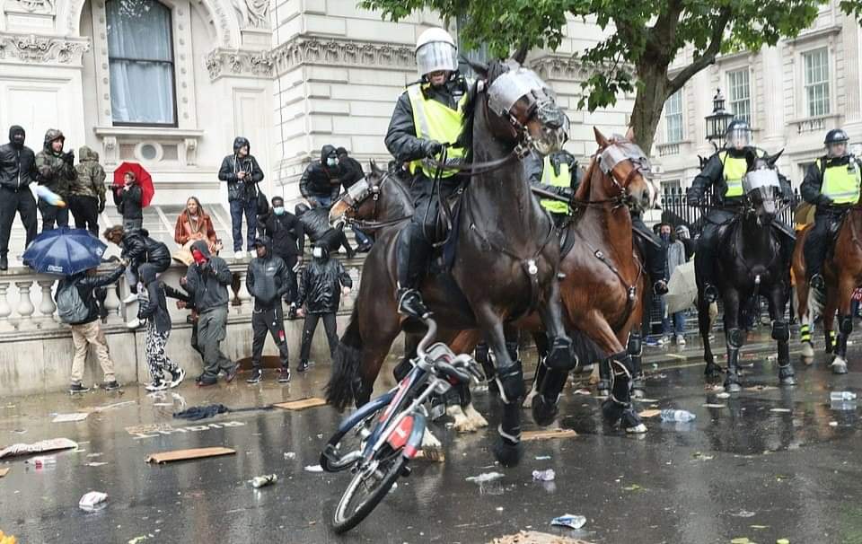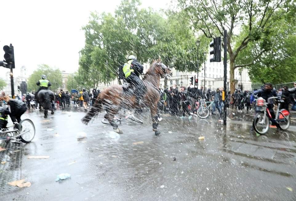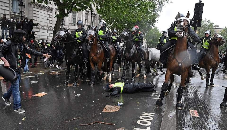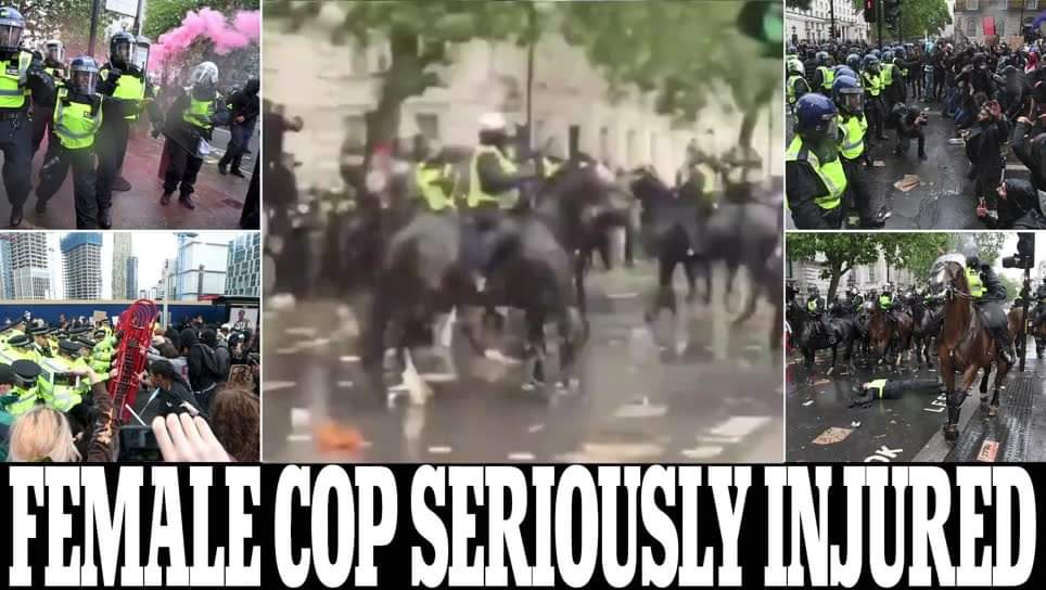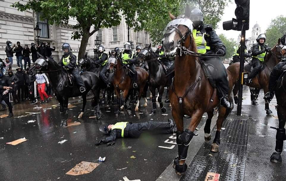 லண்டனில் பிரதமர் இல்லம் அருகாமையில் நடந்த இனவெறிக்கு எதிரான ஆர்ப்பாட்டத்தில்,குதிரையில் வலம்வந்த பெண் பொலிஸ் அதிகாரி ஒருவர் படுகாயமடைந்த சம்பவம் பரபரப்பை ஏற்படுத்தியுள்ளது.குதிரைப்படையை சேர்ந்த அந்த அதிகாரி திட்டமிட்டு வீழ்த்தப்பட்டதாக பொலிஸ் அதிகாரிகள் தரப்பு தெரிவித்துள்ளன.இதில்,அந்த பொலிஸ் அதிகாரியின் நுரையீரல் பாதிக்கப்பட்டுள்ளதாகவும், விலா எலும்புகள் நொறுங்கியுள்ளதாகவும் மட்டுமன்றி தோள்பட்டை எலும்பும் உடைந்துள்ளது என மருத்துவமனை வட்டாரங்கள் தெரிவித்துள்ளன.குறித்த பெண் அதிகாரி காயங்களில் இருந்து மீண்டுவர சுமார்