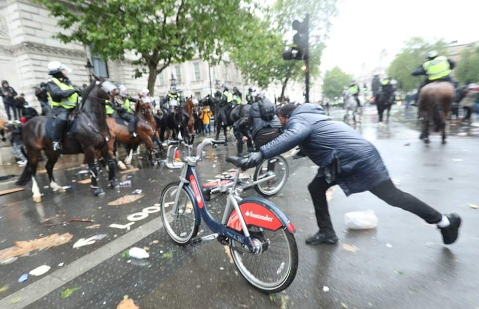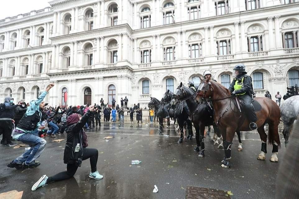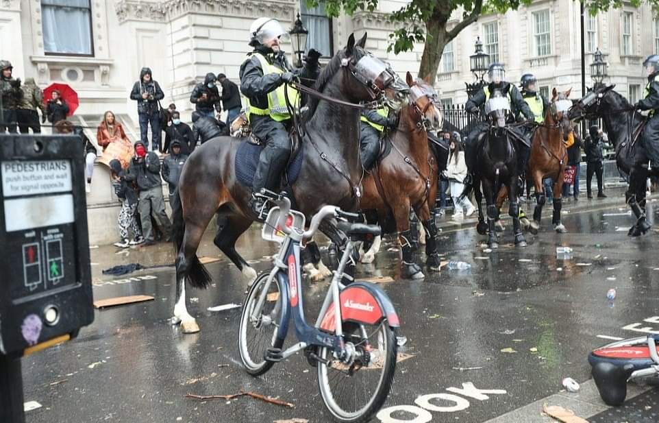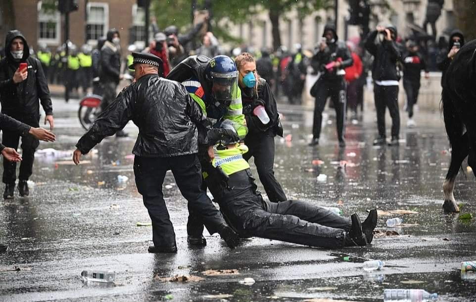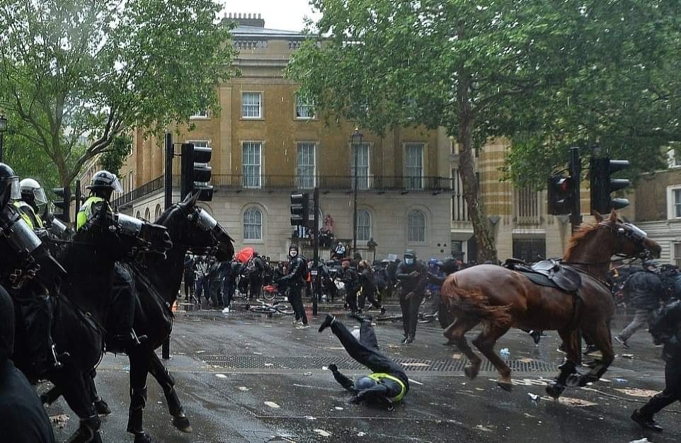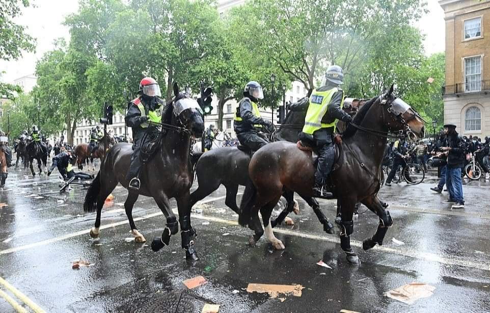 லண்டனில் பிரதமர் இல்லம் அருகாமையில் நடந்த இனவெறிக்கு எதிரான ஆர்ப்பாட்டத்தில்,குதிரையில் வலம்வந்த பெண் பொலிஸ் அதிகாரி ஒருவர் படுகாயமடைந்த சம்பவம் பரபரப்பை ஏற்படுத்தியுள்ளது.குதிரைப்படையை சேர்ந்த அந்த அதிகாரி திட்டமிட்டு வீழ்த்தப்பட்டதாக பொலிஸ் அதிகாரிகள் தரப்பு தெரிவித்துள்ளன.இதில்,அந்த பொலிஸ் அதிகாரியின் நுரையீரல் பாதிக்கப்பட்டுள்ளதாகவும், விலா எலும்புகள் நொறுங்கியுள்ளதாகவும் மட்டுமன்றி தோள்பட்டை எலும்பும் உடைந்துள்ளது என மருத்துவமனை வட்டாரங்கள் தெரிவித்துள்ளன.குறித்த பெண் அதிகாரி காயங்களில் இருந்து மீண்டுவர சுமார்