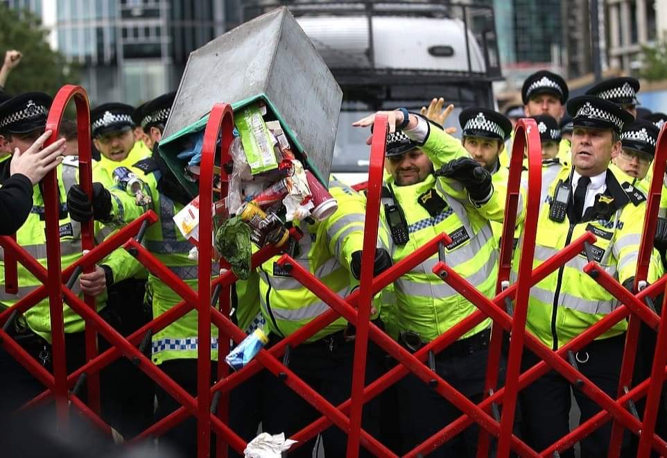 லண்டனில் நேற்று மாலை வரை பெரும் ஆர்பாட்டங்கள் இடம்பெற்றுள்ளது. நேற்று மதியம் ஆரம்பித்த ஆர்ப்பாட்டத்தில் பல்லாயிரக்கணக்கான மக்கள் கலந்து கொண்டு. அமெரிக்காவுக்குத் தமது எதிர்ப்பை வெளியிட்டார்கள். அமெரிக்க தூதுவராலயத்தின் முன்னால் கூடிய மக்கள், மத்திய லண்டனையே ஸ்தம்பிக்கச் செய்தார்கள். வழமைபோல இந்த ஆர்ப்பாட்டமும் இறுதியில் கலவரமாக முடிவுற்றுள்ளது