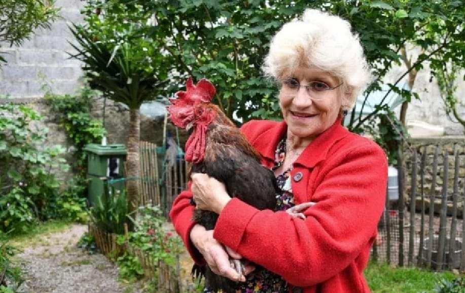 (படம் :மொறிஸ் சேவலுடன் அதன் உரிமையாளர் Corinne Fesseau.)