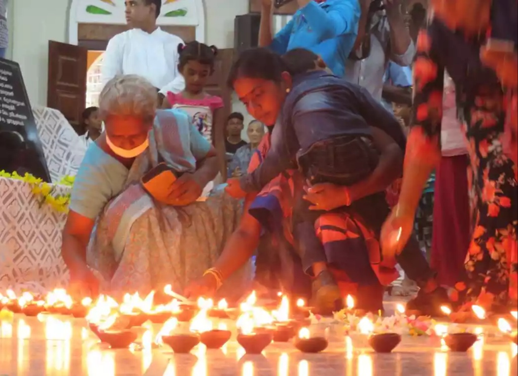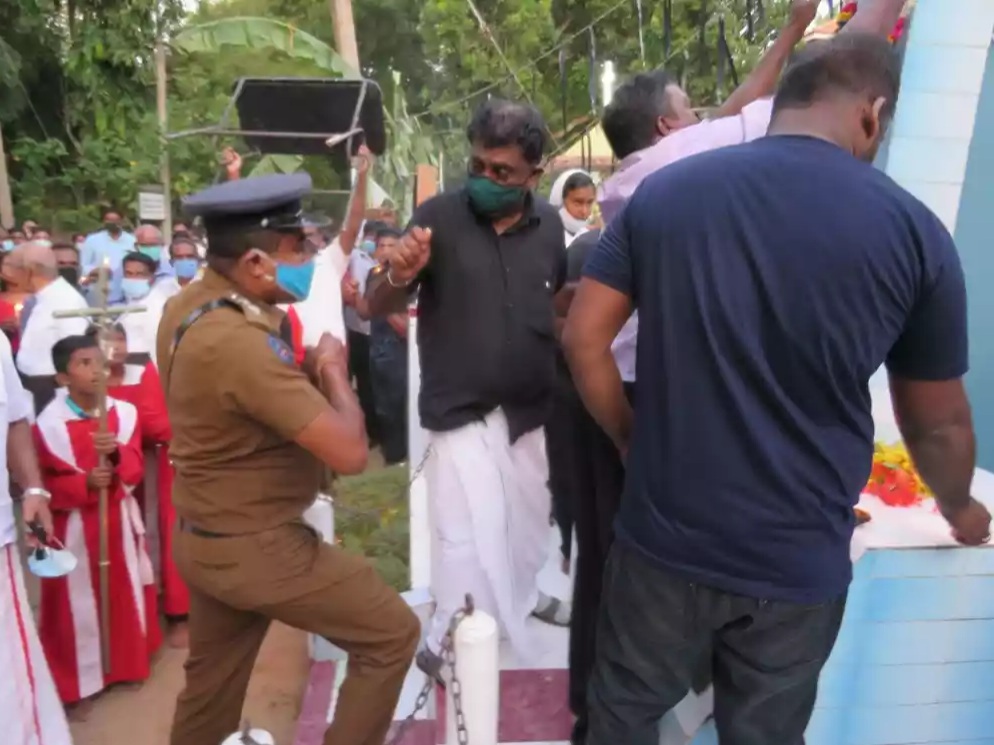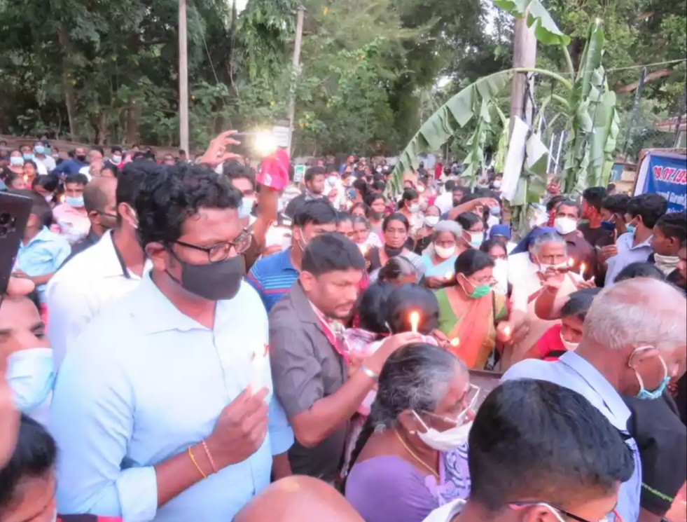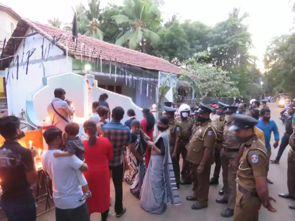 பின்னர் அருட்தந்தையர்கள் மட்டும் சுடரேற்றி அஞ்சலி செலுத்த காவல்துறையினர் அனுமதித்தனர். அதனை தொடர்ந்து உயிரிழந்தவர்களின் உறவினர்கள் மற்றும் பொதுமக்கள் அஞ்சலி செலுத்த காவல்துறையினர் அனுமதிக்கவில்லை.