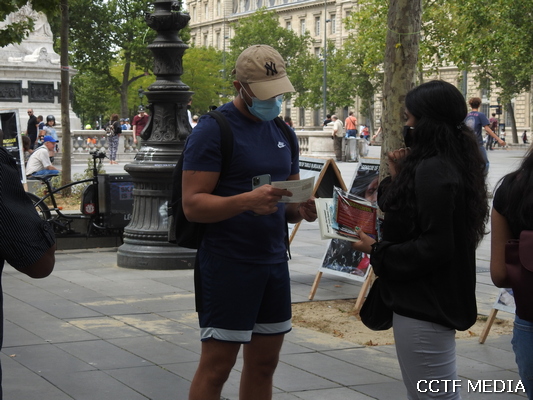 பல்லின மக்களின் முன்பாக கறுப்பு யூலை நினைவுசுமந்த எழுச்சிகானங்கள் ஒலித்ததுடன், சிறிலங்கா இனவாத அரசின் தமிழின அழிப்புத் தொடர்பான சாட்சியங்களைக் கூறும் புகைப்படங்களும் பதாதைகளும் நிகழ்வில் காட்சிப்படுத்தப்பட்டிருந்தன. பல வெளிநாட்டு மக்கள் ஆர்வத்துடன் எமது தமிழினத்துக்கு சிங்களப் பேரினவாதம் செய்த அநீதிகளை ஆர்வத்தோடு கேட்டுச்சென்றதையும் காணமுடிந்தது. பிரெஞ்சு, ஆங்கில மொழிகளிலான துண்டுப்பிரசுரங்களுடன் முகக்கவசங்களையும் செயற்பாட்டாளர் திரு.கஜன் அவர்கள் வழங்கியிருந்தார்.
