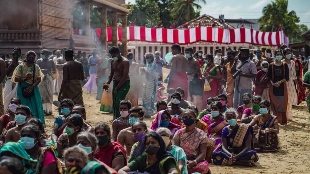 கோவிட் 19 பாதுகாப்பு நடைமுறைகளைக் கடைப்பிடித்தவாறு அடியார்கள் கலந்து கொண்டதைக் காணமுடிந்தது.