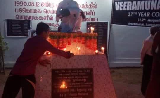12.08.1990 அன்று இதே நாளில் அம்பாறை மாவட்ட வீரமுனை சிந்தாயாத்திரைப் பிள்ளையார் ஆலயத்தில் வைத்து இனவெறியர்கள் நடாத்திய கோரத்தாண்டவத்தில் 55 தமிழர்கள் கொல்லப்பட்டமையை நினைவு கூரும் நாள் இன்றாகும்.
