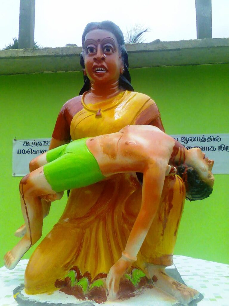 ஆலய வளாகம் என்று கூட பார்க்காமல் விரட்டி விரட்டி பெண்கள் சிறுவர்கள்,கர்ப்பிணிகள், முதியவர்கள் என்று கூட பாராது மிகவும் அகோரமான முறையில் பாசிச கொடுங்கோல் இஸ்லாமிய காடையர்களால் கொன்று குவித்தனர். இவர்கள் தமிழர்கள் என்ற காரணத்திற்காகவே கொன்று பிணமாக்கப்பட்டார்கள்.