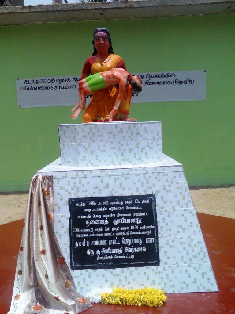 12.08.2008 அன்று 18 ஆவது ஆண்டு நிறைவு நாளில் நினைவுச் சிலை ஒன்று திறந்து வைக்கப்பட்டு ஆண்டு தோறும் நினைவு கொள்ளப்பட்டு வருகிறது.
