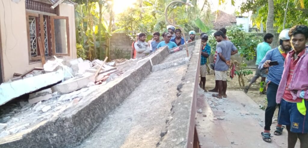 யாழ்ப்பாணம் – சுன்னாகம் காவல்துறை பிரிவிற்குட்பட்ட அம்பனைப் பகுதியில் வீடு ஒன்றில் கட்டட வேலையில் ஈடுபட்ட கட்டட கூலித் தொழிலாளி ஒருவர் கூரைத் தளத்தை உடைக்க முற்பட்ட வேளை சீமெந்திலான முகப்புக் கூரை விழுந்ததில் உயிரிழந்துள்ளார்.