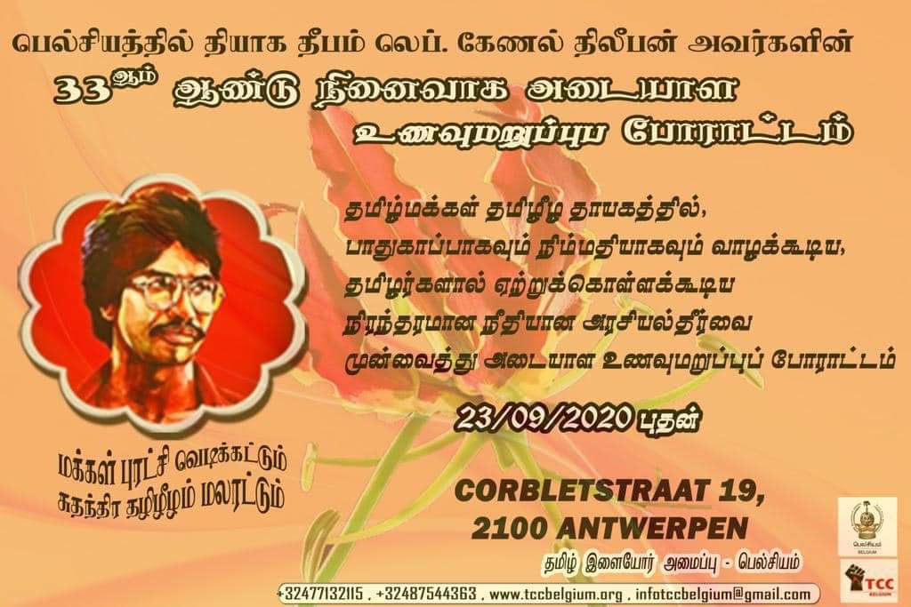 அந்த வகையில் பெல்சியம் நாட்டின் தமிழ் இளையோர் அமைப்பினர் எதிர்வரும் 23.09.2020 புதன்கிழமை உணவு மறுப்புப் போராட்டத்தை நடாத்தவுள்ளனர்.