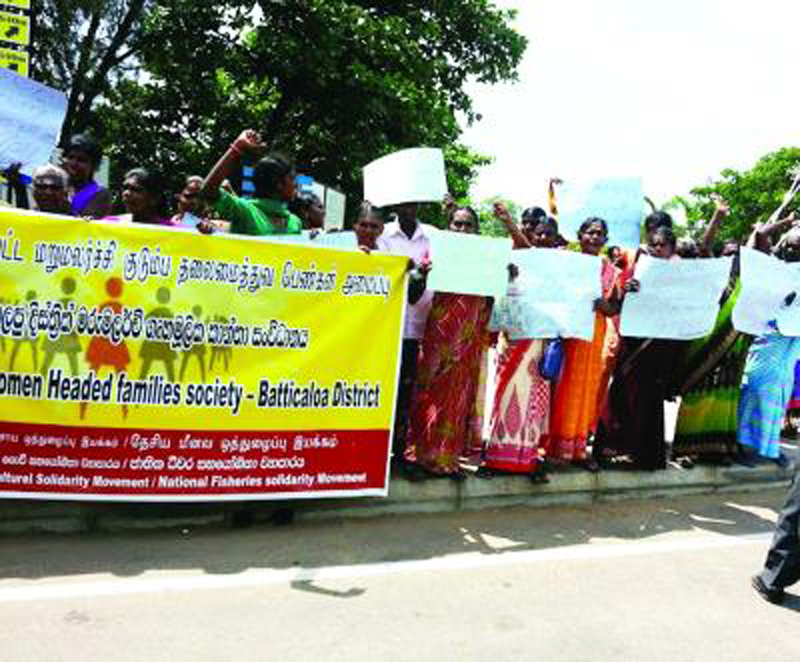 மட்டக்களப்பு காந்திபூங்காவில் தேசிய மீனவ ஒத்துழைப்பு இயக்கம் மற்றும் மறுமலர்ச்சி குடும்ப தலைமைத்துவ பெண்கள் அமைப்பினால் இந்த ஆர்ப்பாட்டம் நடத்தப்பட்டது.
